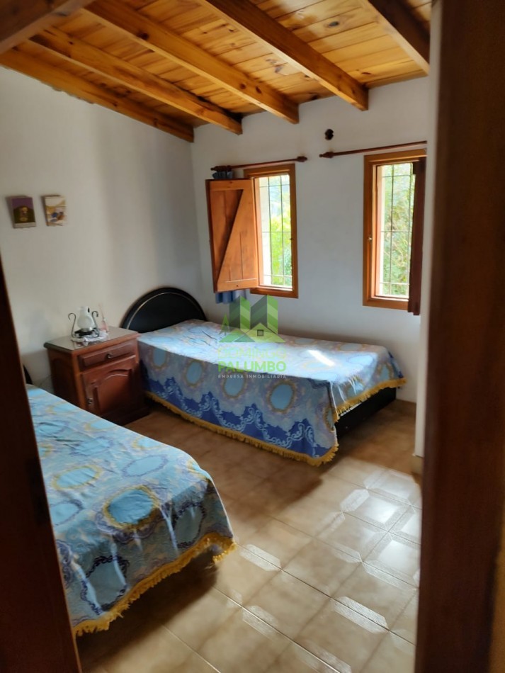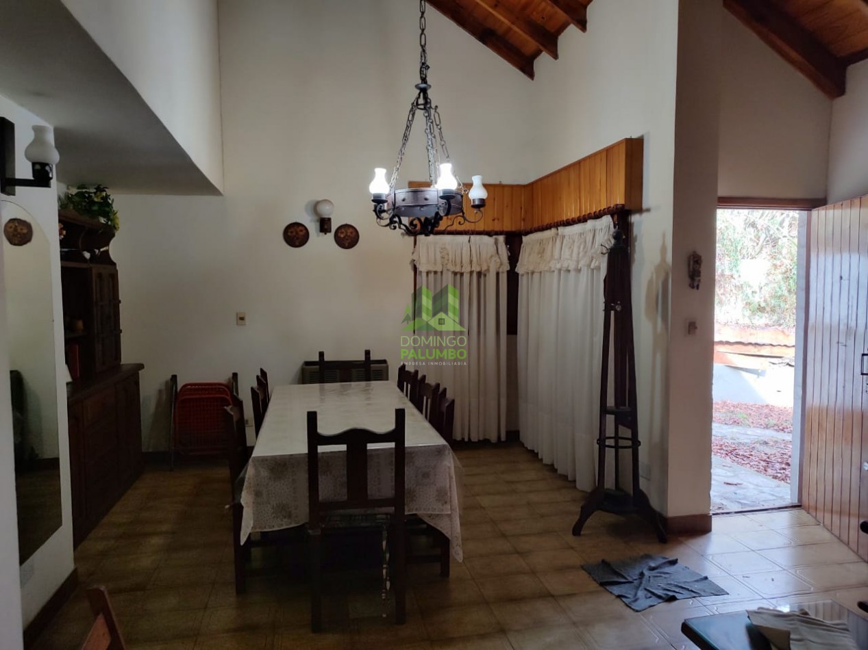 HERMOSA CASA , 5 AMBIENTES , CUENTA EN LA PLANTA BAJA CON UN AMPLIO LIVING COMEDOR , CON UN HOGAR CHIMENEA , ESTUFAS TIRO BALANCEADO , UNA AMPLIA HABITACION MATRIMONIAL CON CALEFACCION Y PLACARD , UN BAÑO COMPLETO , COCINA TOTALMENTE EQUIPADA CON SALIDA AL PATIO TRASERO , EN EL PATIO TRASERO NOS ENCONTRAMOS CON UN CUARTO DE LAVADO CON BAÑO Y HABITACION . EN EL FONDO CUENTA CON UN PEQUEÑO JARDIN Y PARRILLA , TIENE COCHERA CUBIERTA PARA 2 VEHICULOS .
