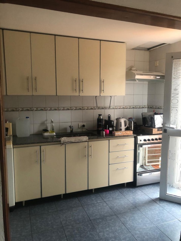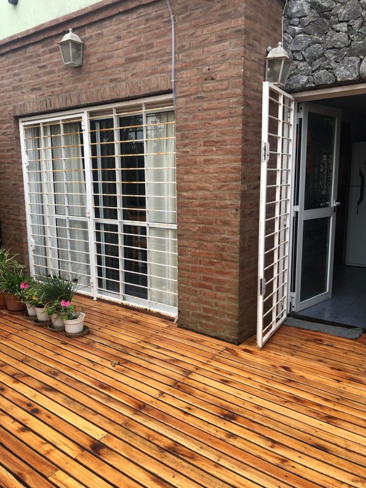 EN LA PLANTA BAJA NOS ENCONTRAMOS AL INGRESO CON UN AMPLIO LIVING-COMEDOR DIARIO ,UN TOILETTE Y UNA AMPLIA Y FUNCIONAL COCINA INTEGRADA AMOBLADA CON MUEBLE BAJO Y SOBRE MESADA , CON MESADA DE GRANITO EN PERFECTAS CONDICIONES , LAVARROPAS INTEGRADO Y CON UN GRAN VENTANAL CON SALIDA AL DECK DEL PATIO PRIVADO QUE DISPONE DE PARRILLA Y LAVADERO.